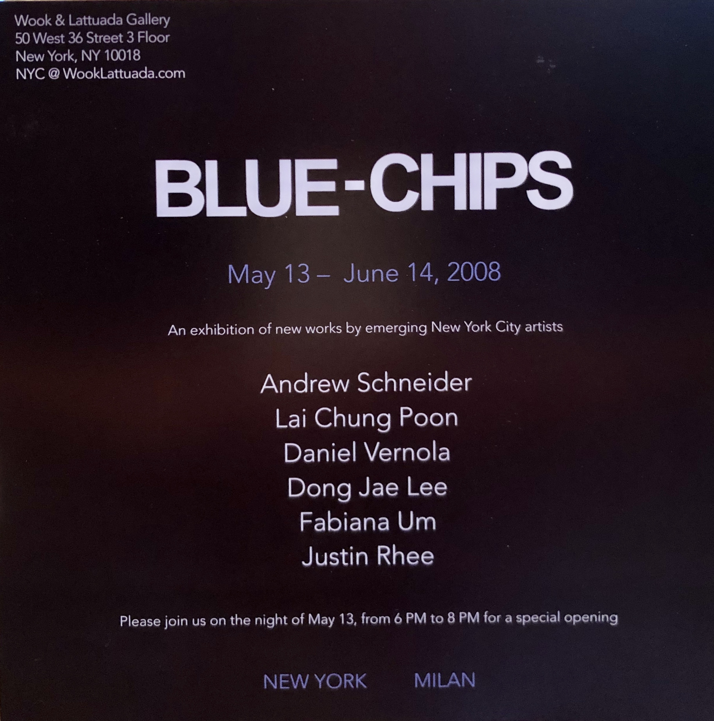 View Larger Image Gallery viewdaniel2020-08-08T12:31:15+00:00 WOOK & LATTUADA GALLERY Blue Chips West 36th Street Manhattan 2008 FacebookTwitterLinkedInWhatsAppPinterestEmail Related Projects A happy home Gallery A happy home Press Gallery Press Show invite recto/verso Gallery Show invite recto/verso Artist and their work Gallery Artist and their work Thesis exhibition Gallery Thesis exhibition